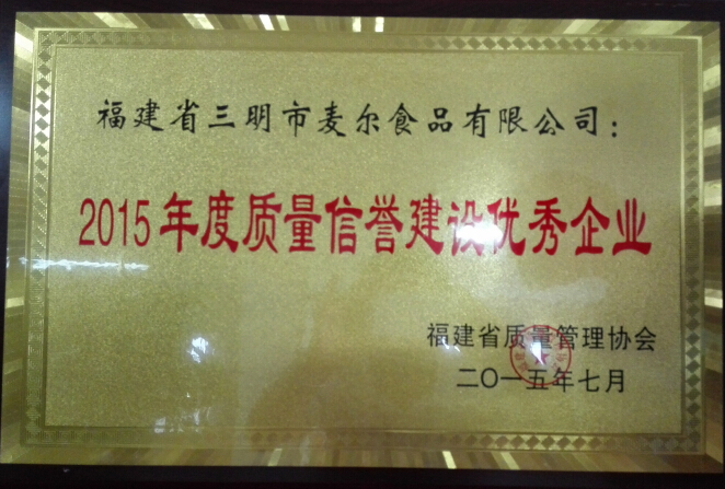 2015年8月11日,公司榮獲福建省“2015年度質(zhì)量信譽建設(shè)優(yōu)秀企業(yè)”稱號。